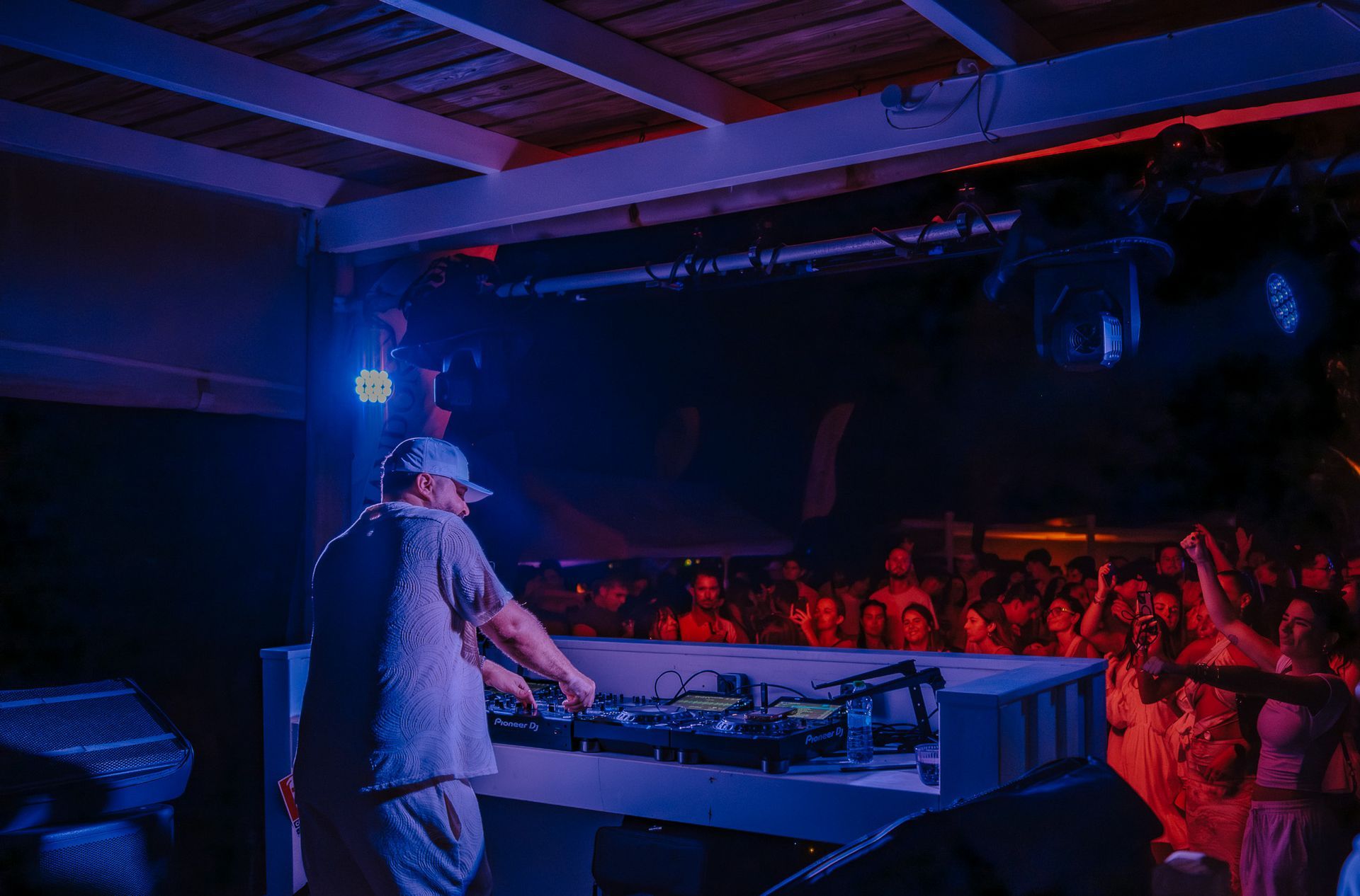 Du coucher du soleil jusqu’à la nuit, il a enchaîné hip-hop, afro, amapiano et edits avec une énergie communicative qui a fait vibrer le public.